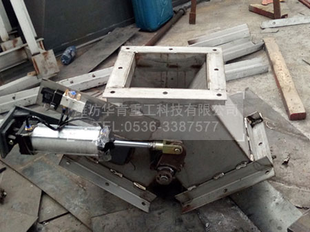 該產品采用優質碳素鋼板焊接結構、具有體積小、重量輕、阻力小等特點。采用電液推桿驅動,運行平穩、故障率低、可以快速切換物料流向,也可以接受調節或變送單元信號進行自動控制。